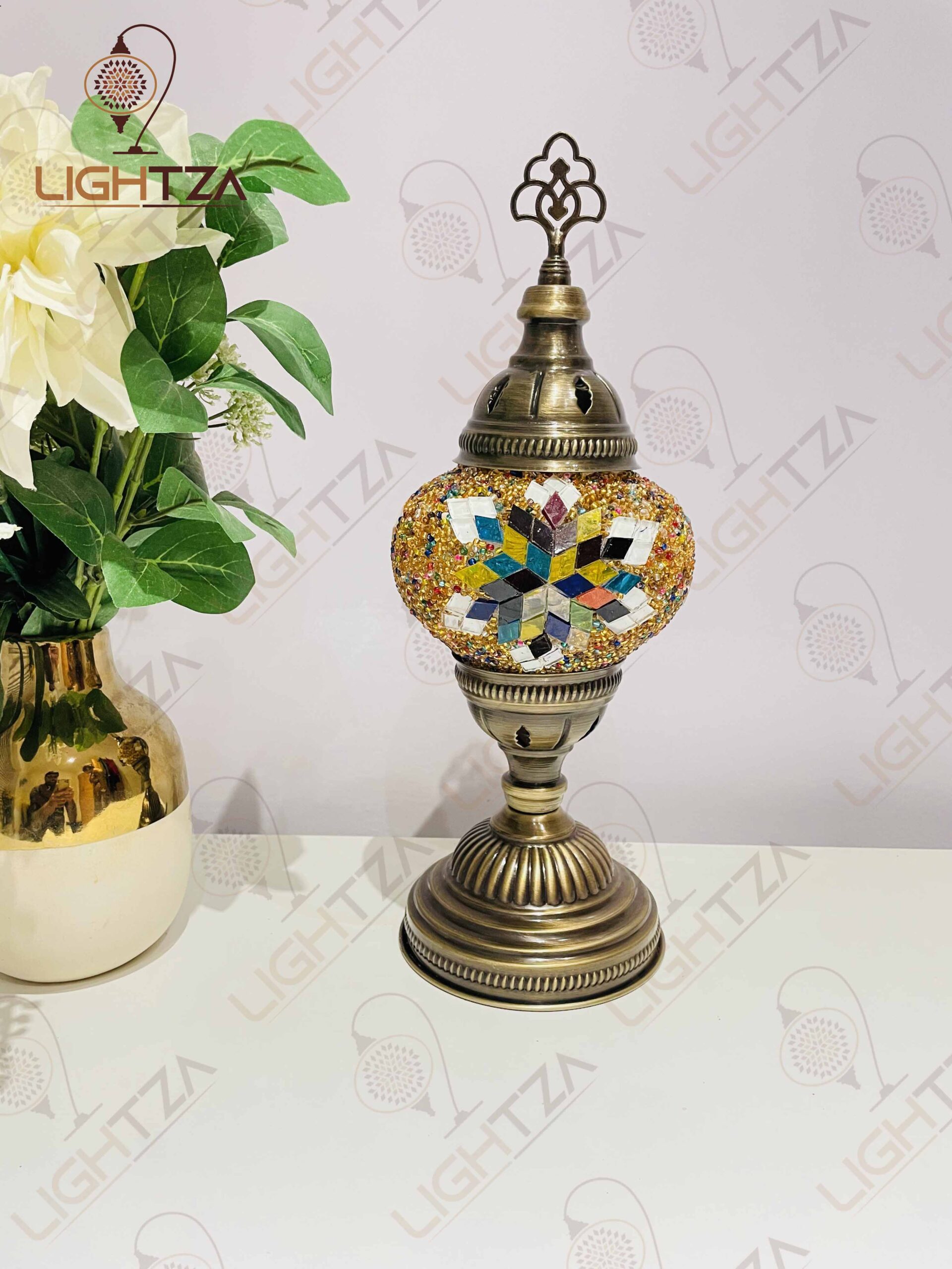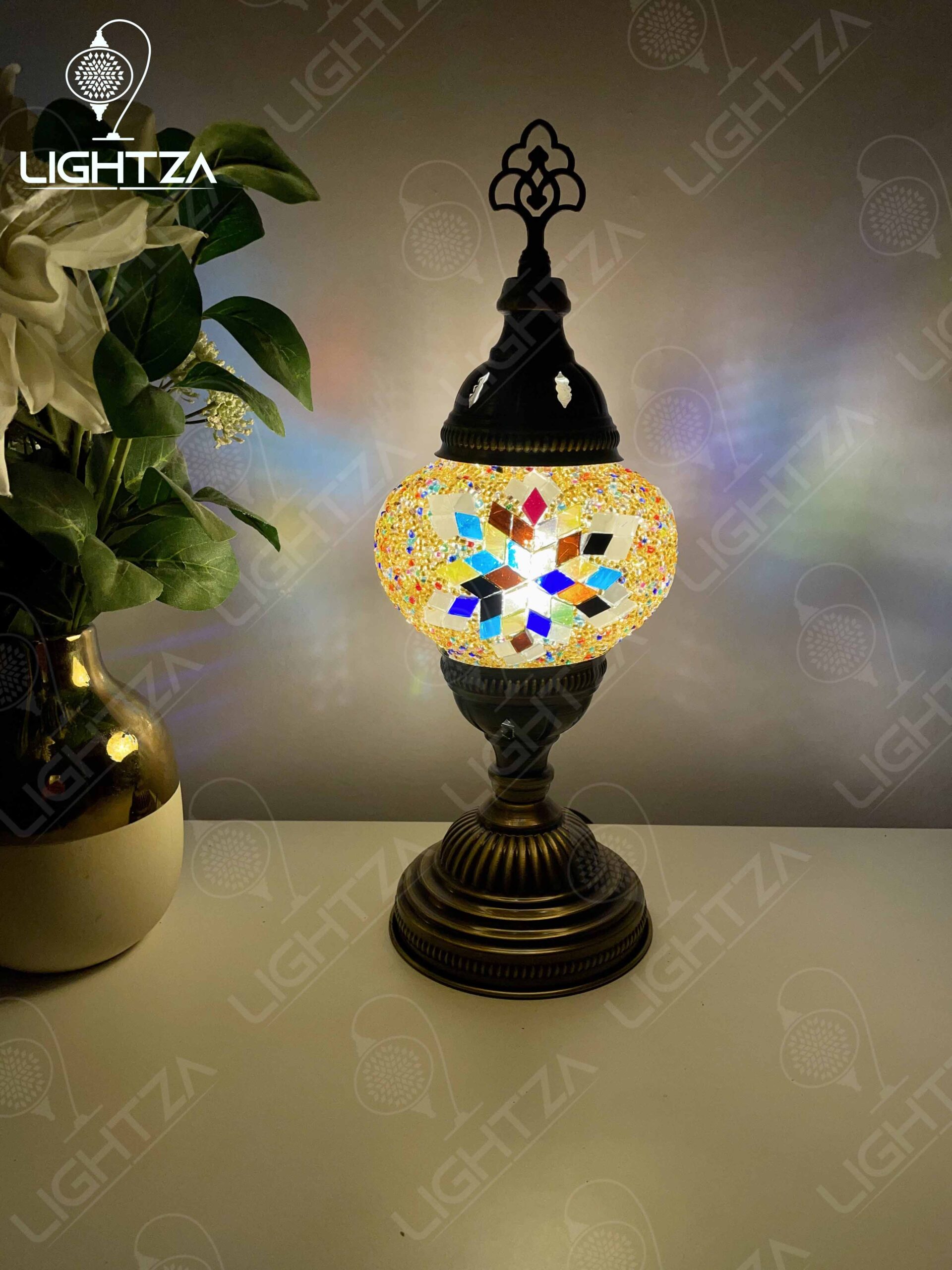 Multi Color Flower & Golden Turkish Moroccan Mosaic Handmade Table Lamp