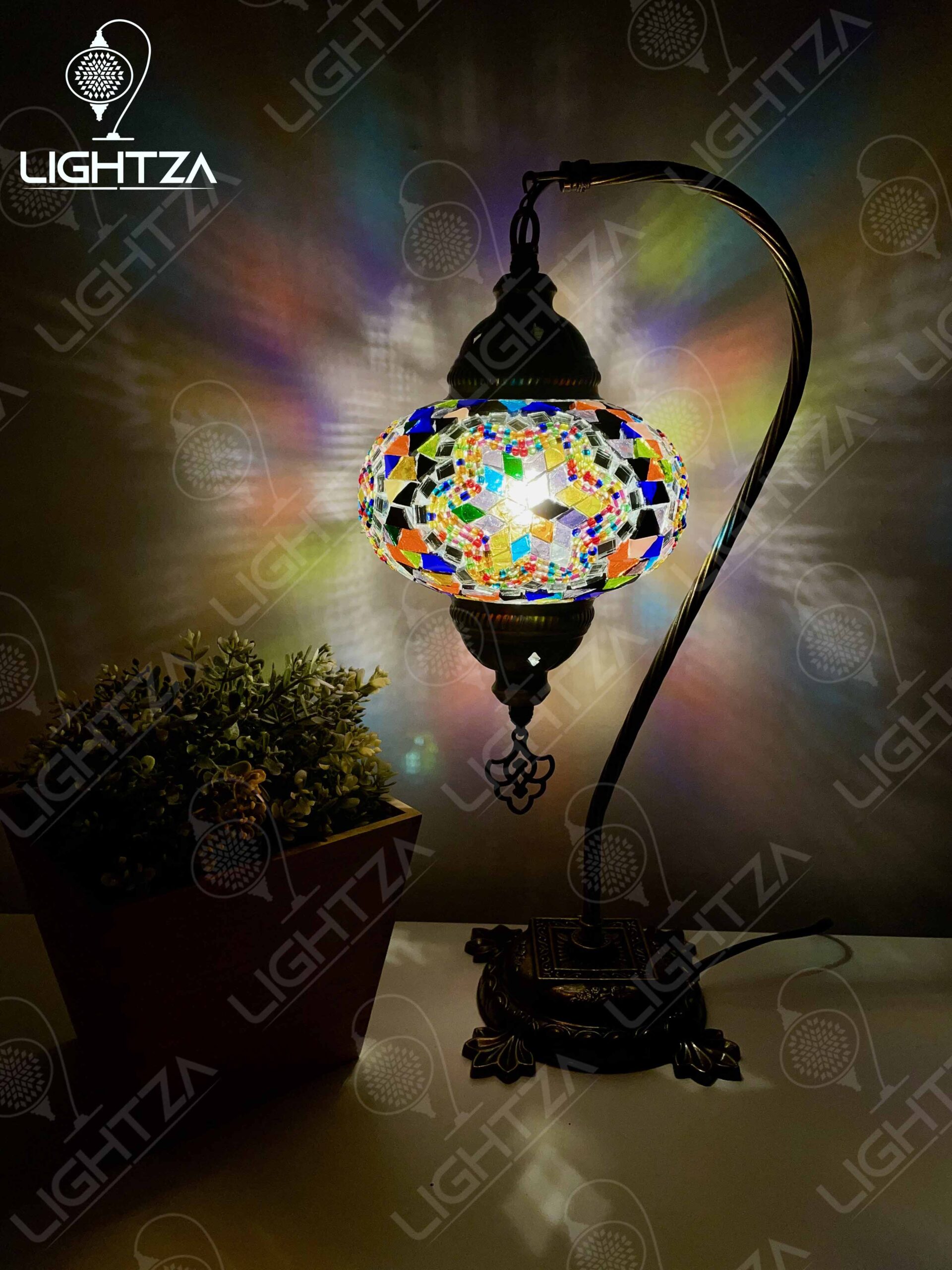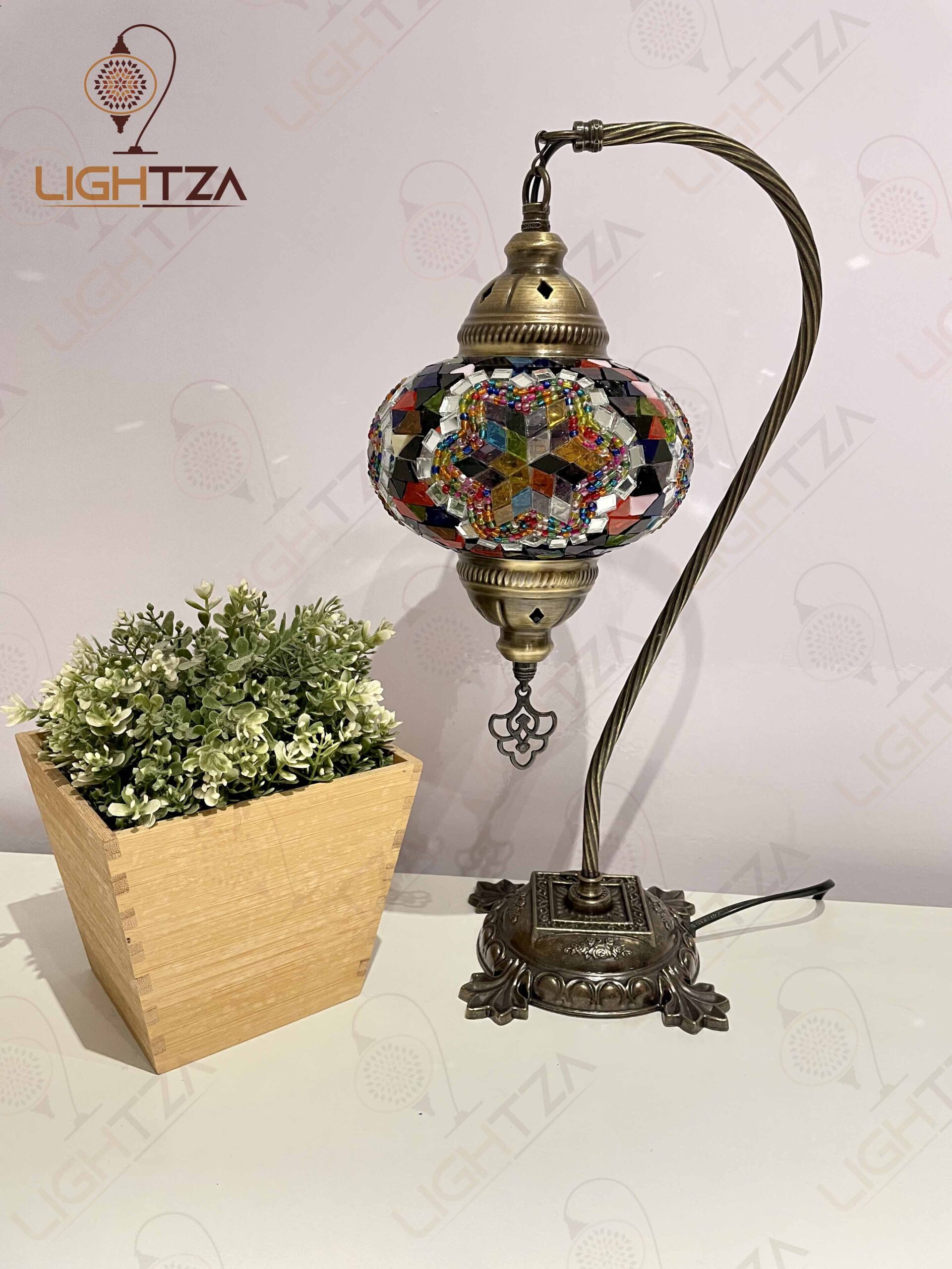 Multi Color Flower Turkish Moroccan Mosaic Handmade Swan Neck Table Lamp
