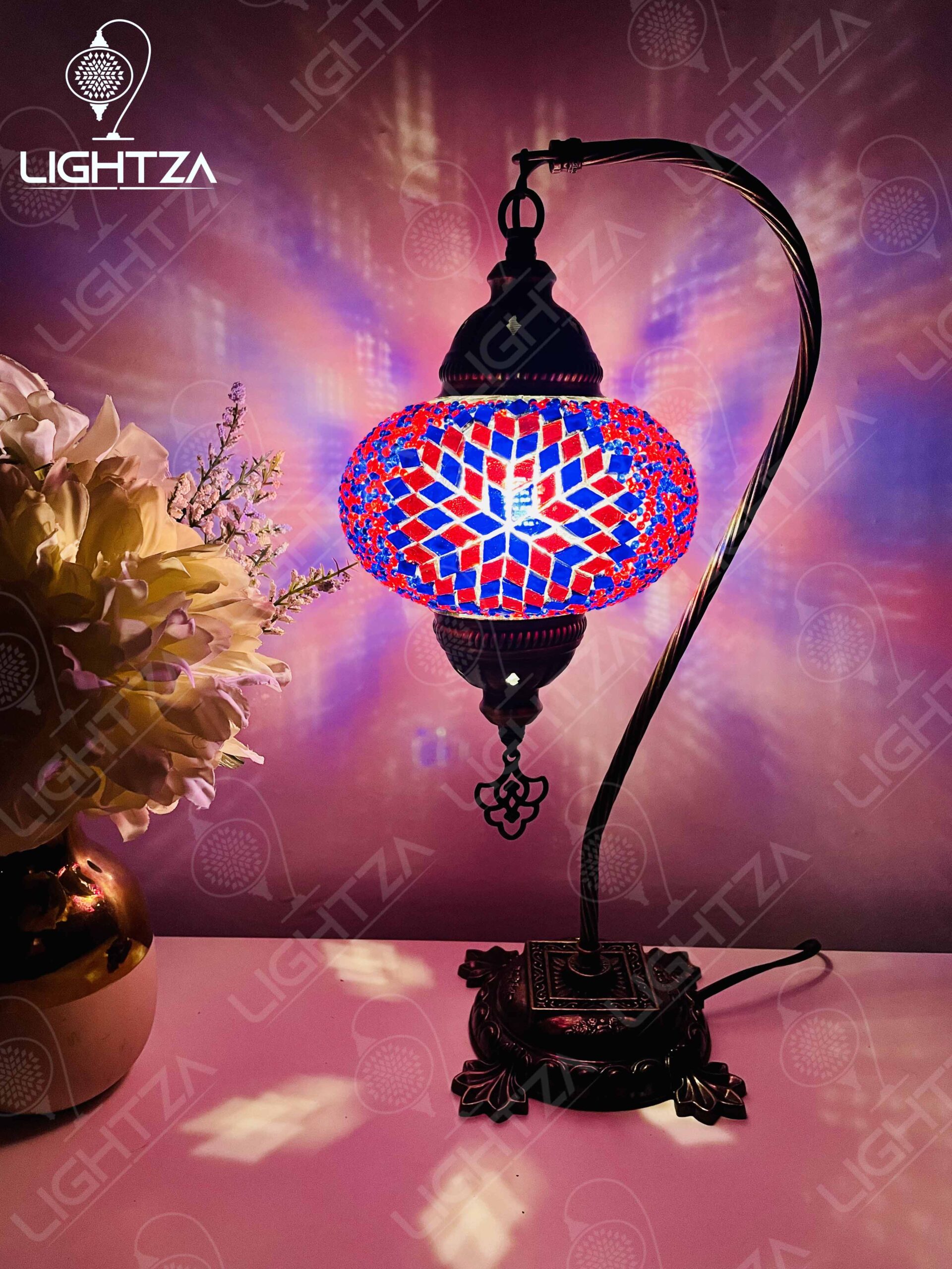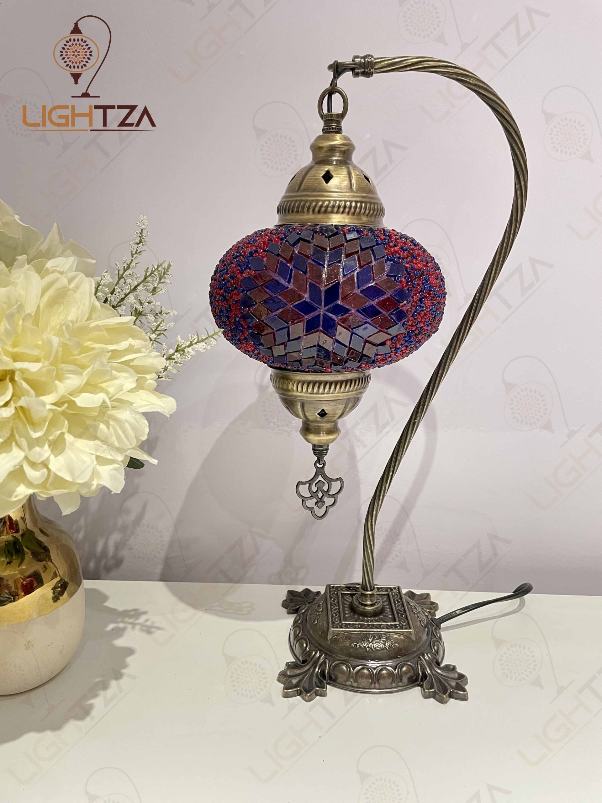 Purple Blue Turkish Moroccan Mosaic Handmade Swan Neck Table Lamp