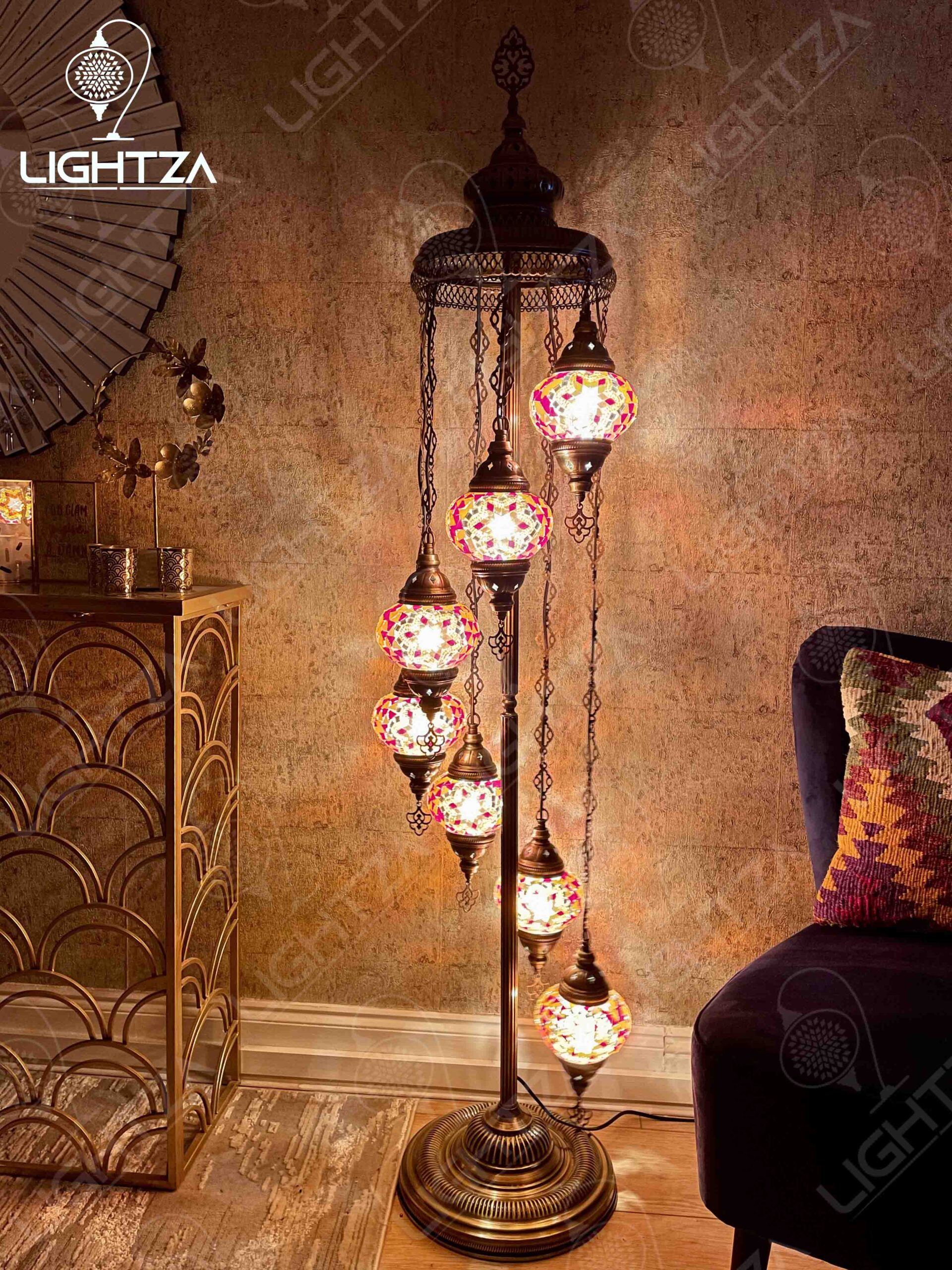 Red Turkish Moroccan Mosaic Handmade 7 Globes Floor Lamp