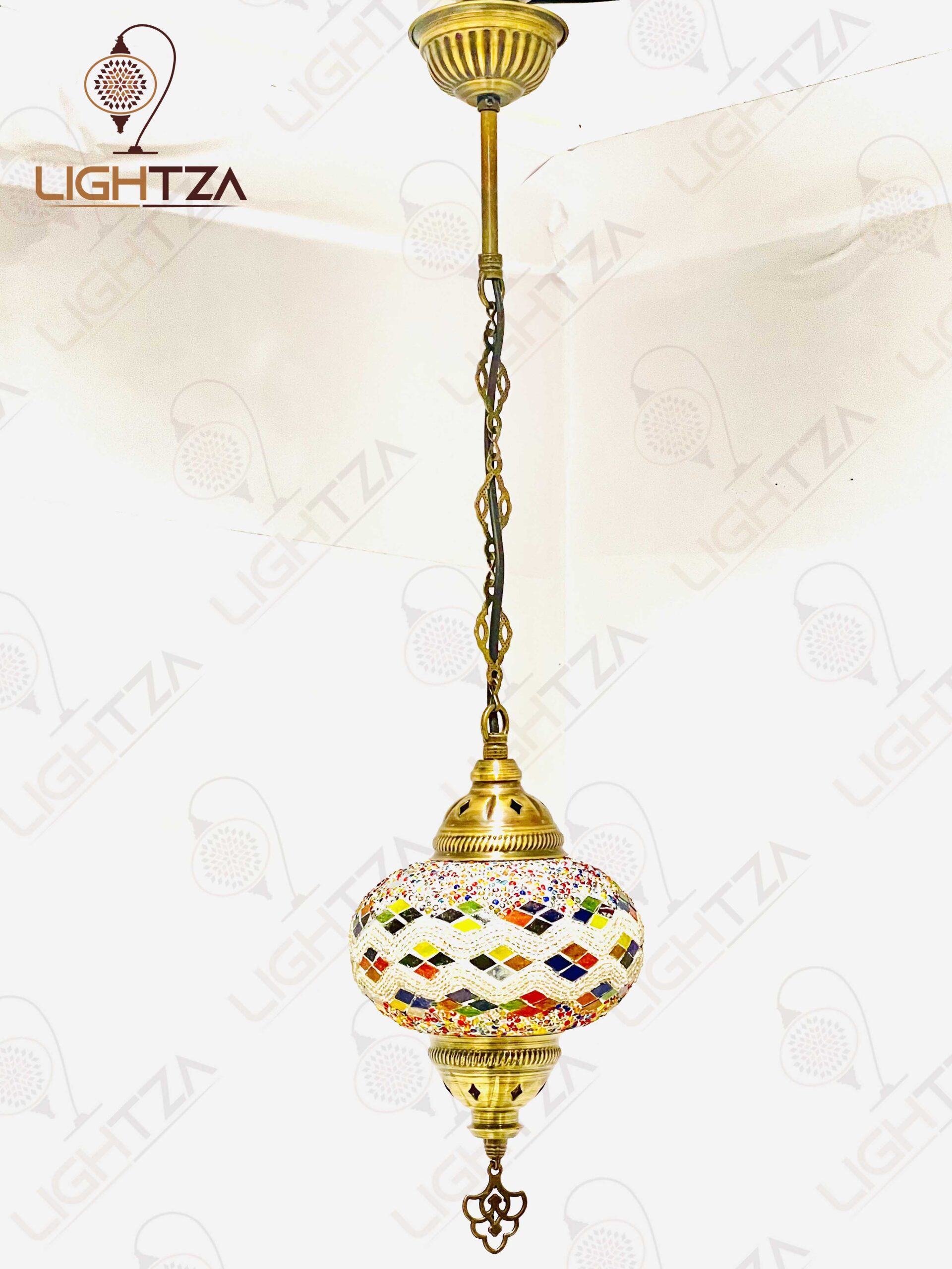 White Multi Color Turkish Moroccan Mosaic Handmade Single Globes Chandelier