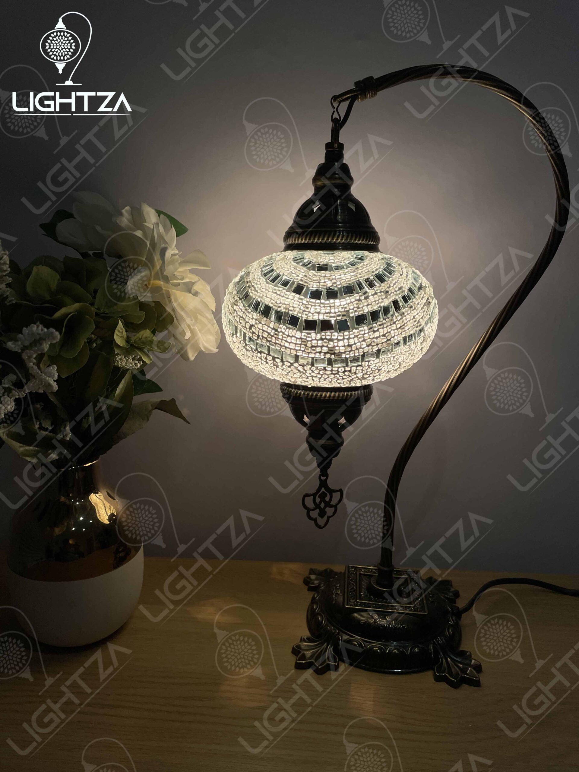 White Pure Turkish Moroccan Mosaic Handmade Swan Neck Table Lamp